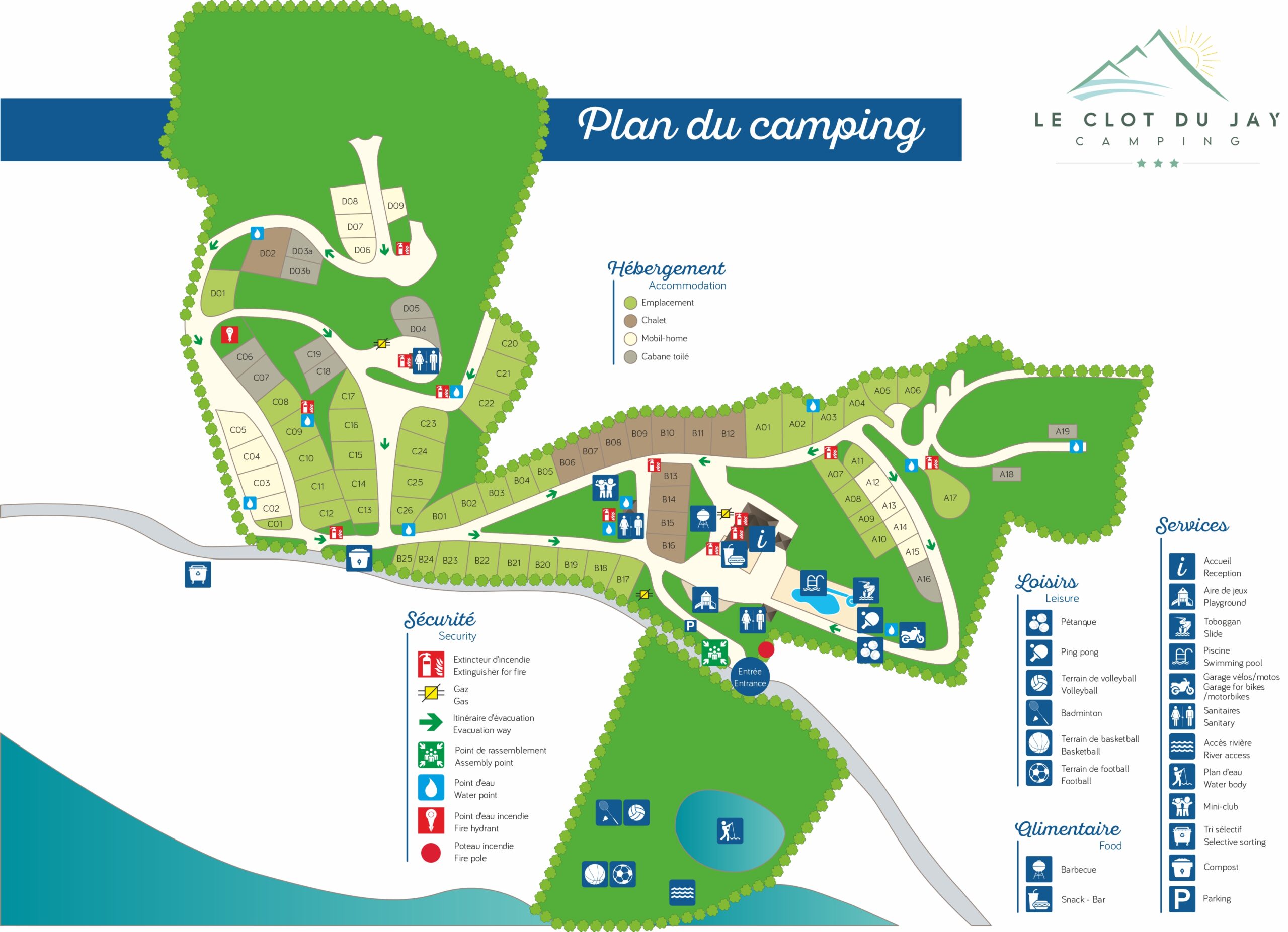 Discover the campsite pool and its surroundings